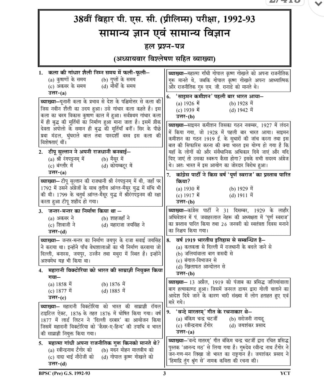 BPSC previous year question paper (38विं – 67विं bpsc) pdf