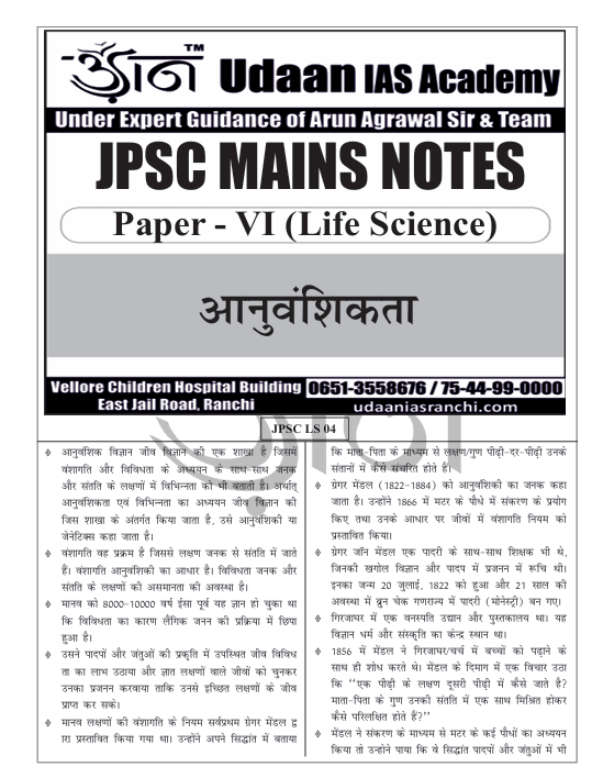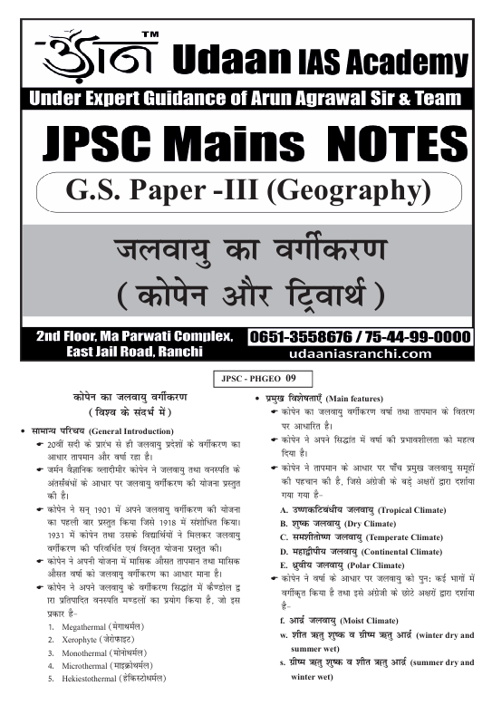 JPSC Mains Notes PDF (Hindi) – Udaan IAS Academy द्वारा तैयार Paper-wise notes: