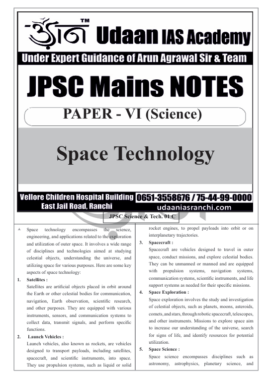 JPSC Mains Notes PDF (Udaan IAS Academy) – Economy, Geography, Life Science, Space Technology + KGS Notes (Hindi)