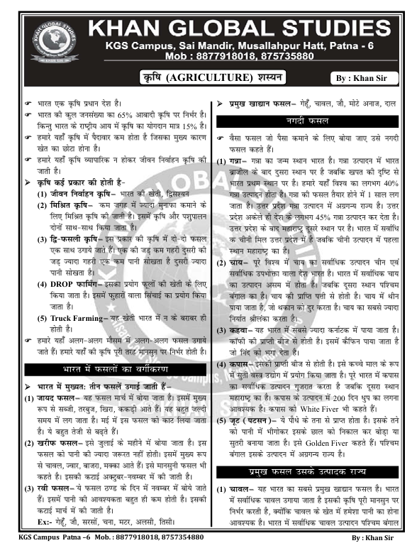 साथ में Khan Global Studies (KGS) Notes भी (Agriculture विषय)।